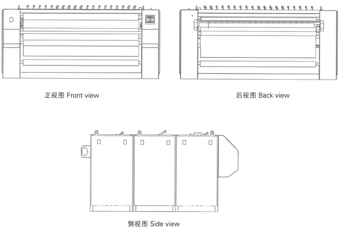熨燙速度可根據織物厚度與蒸汽供應狀態任意調節(無極調速),有單個、兩個或三個滾筒機型,雙滾筒個三滾筒熨平機可實現高速熨平。