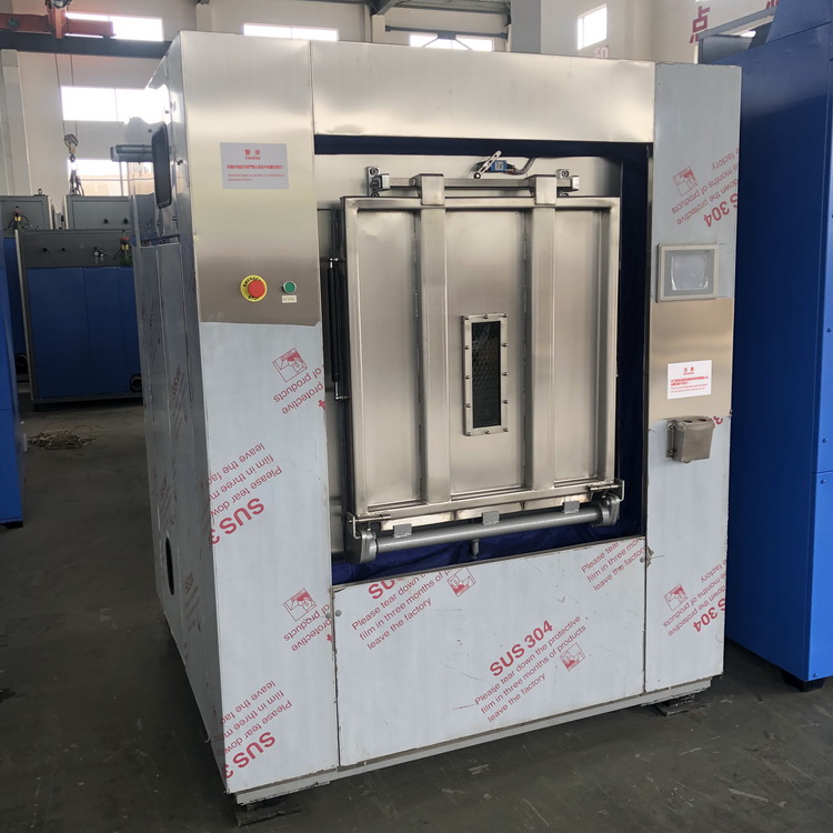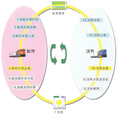 首先,從設備上采取最先進的衛(wèi)生隔離式洗衣機。背靠背的兩道機門,使污染布草的裝載和潔凈布草的卸載從不同的門進出,從源頭上避免了交叉感染。
